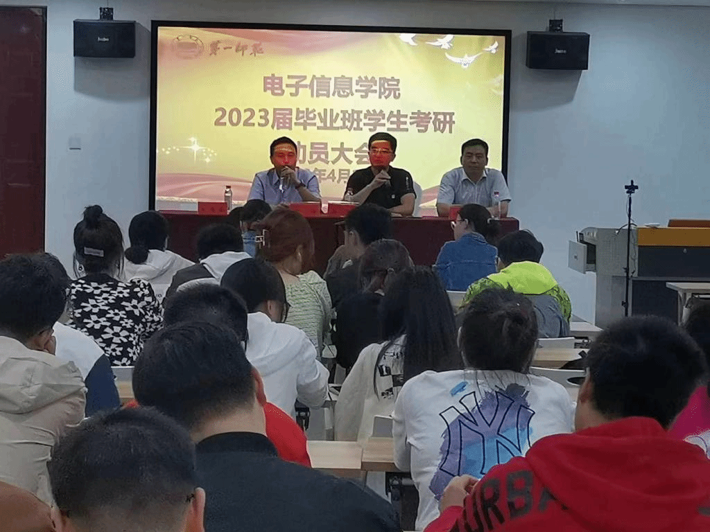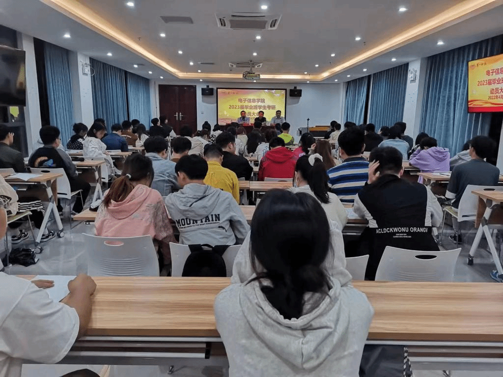 学生考研情况分析为切入点,强调学风建设对于考研的重要性,强调将考研作为电信院学生的必修课来抓,还向学生们介绍了学院在推进考研方面的工作部署,学院创造各种备考学习条件,全面做好学生考研服务工作。动员会上,院长助理滕书华教授结合自身的求学经历,给同学们分享了考研考博与人生成长经验。高峰院长从电子信息行业发展与当前就业形势出发,鼓励大家要积极考研,不断提升自己专业素养,才能有更大的平台和更加光明的人生前景。学生们备受鼓舞,在会后,还主动留在现场向老师们进行咨询和交流。