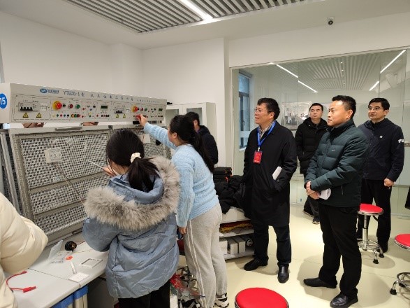 之后,胡穗一行来到百熙楼三楼电子电工实训中心了解实训课开展情况,对实训教学给予高度评价。本次检查,学院院长高峰、书记吴涛、教学副院长王建军全程陪同。