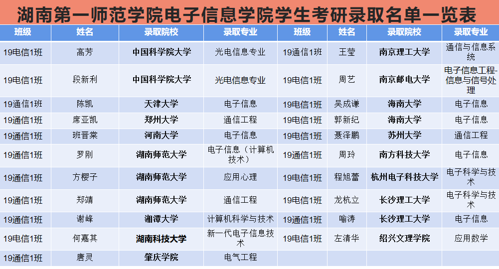 19级学生有70人参加考研,过国家线37人,占考研人数的52.8%,拟录取21人,录取学生中有12人被211和双一流高校录取,升学质量显著提高。