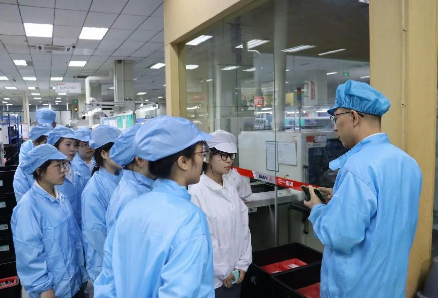 在研发和生产的结合下,同学们亲身体验了生产车间的科技与智能。这不仅让他们感受到现代制造业的高效与先进,也帮助他们正式进入职场,褪去学生时代的青涩,坚定理想信念,并练就过硬本领。