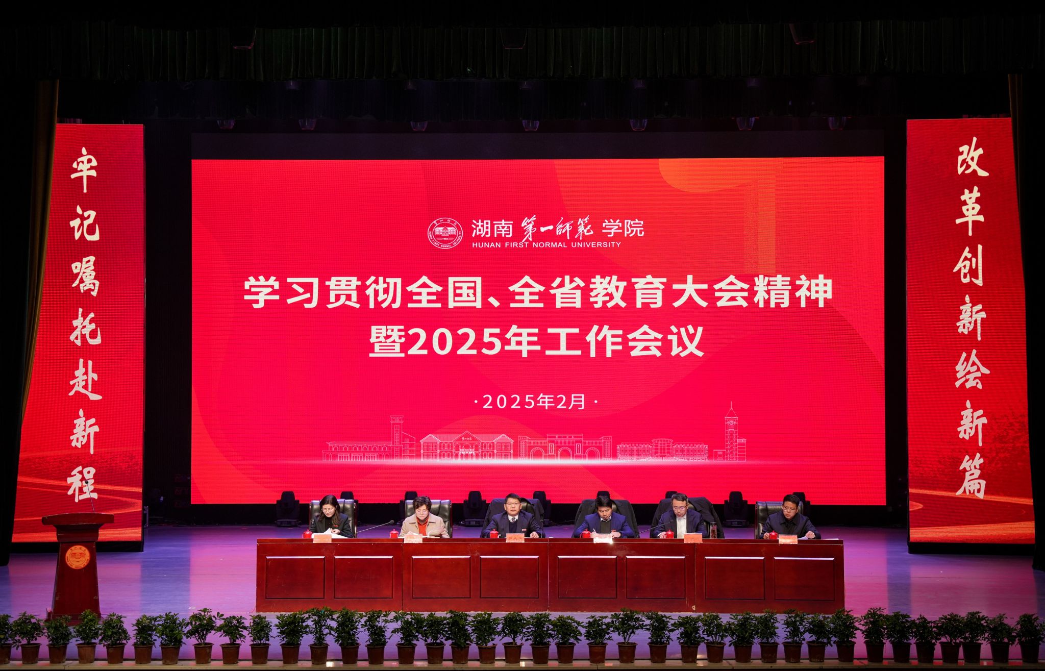2月21日,我校在东方红校区田汉剧场召开学习贯彻全国、全省教育大会精神暨2025年工作会议。校党委书记罗成翼作2025年工作报告,全体在家校领导、党委委员出席会议。校党委委员、副校长周发明主持会议。