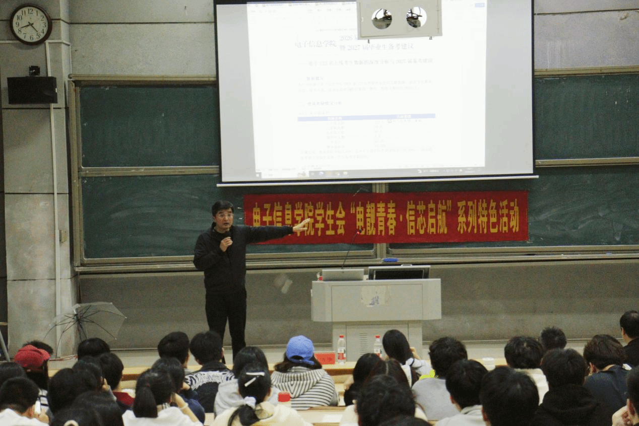 院党委书记吴涛作专题指导。吴涛书记结合学院近年考研数据,分析当前考研整体形势,对比学硕与专硕报考差异,梳理不同地区、层次院校的报考特点,通过真实案例拆解择校策略与调剂要点。他强调,考研是知识储备与心态规划的双重考验,鼓励同学们理性看待考研热潮,拒绝盲目跟风,明确目标、制定计划、稳扎稳打,以积极心态应对备考挑战。