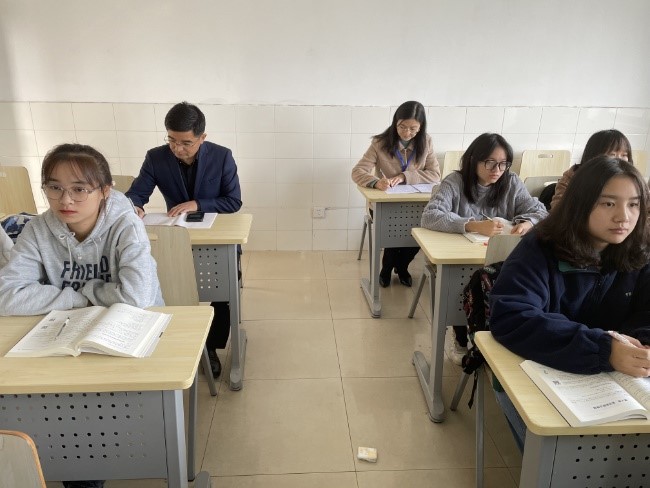 胡恩博老师的课堂进行听课,参与听课的还有学院党委书记吴涛,教务处欧阳君。