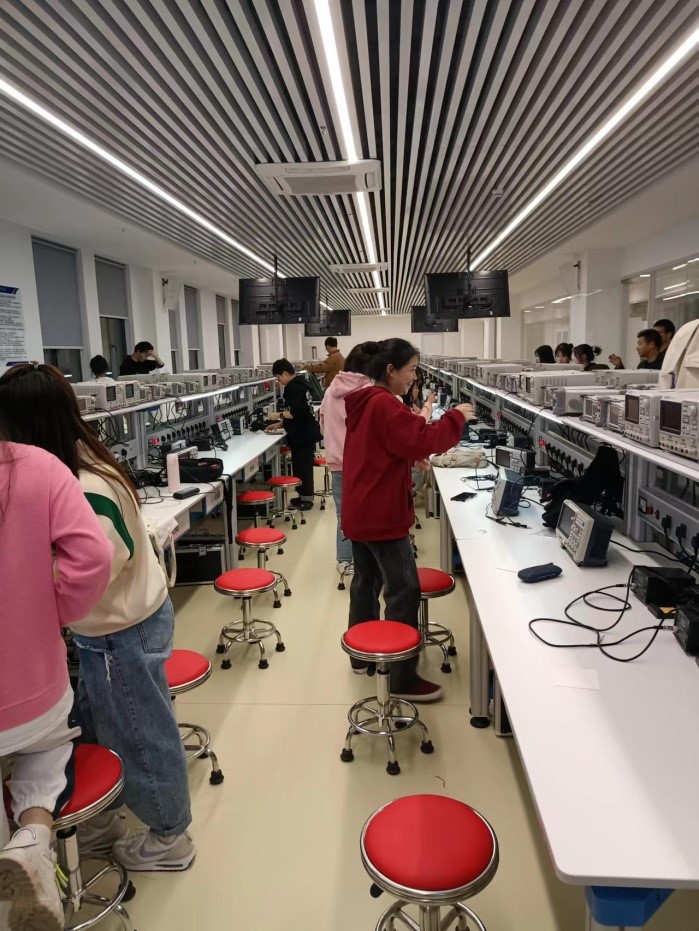 领导的大力支持下,学校投资数百万购买了先进的仪器设备建设了电工电子实训室。我校2021级电子信息工程两个班、2021级通信工程两个班、2021级市场营销两个班、2021级计算机科学与技术三个班、2021级科教1-2班-878班-879班-880班共550名理工科学生开展了为期九周的电工电子实训。目前实训效果很好,受训学生普遍反映收获满满,既提高了学生电工电子技术方面的动手能力,又锻炼了学生不怕吃苦不怕累的劳动精神,更培养了学生忠城实信、精益求精的职业道德。