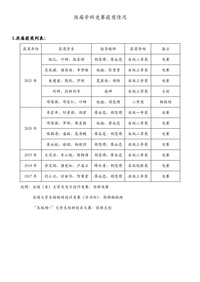 历届学科竞赛获奖