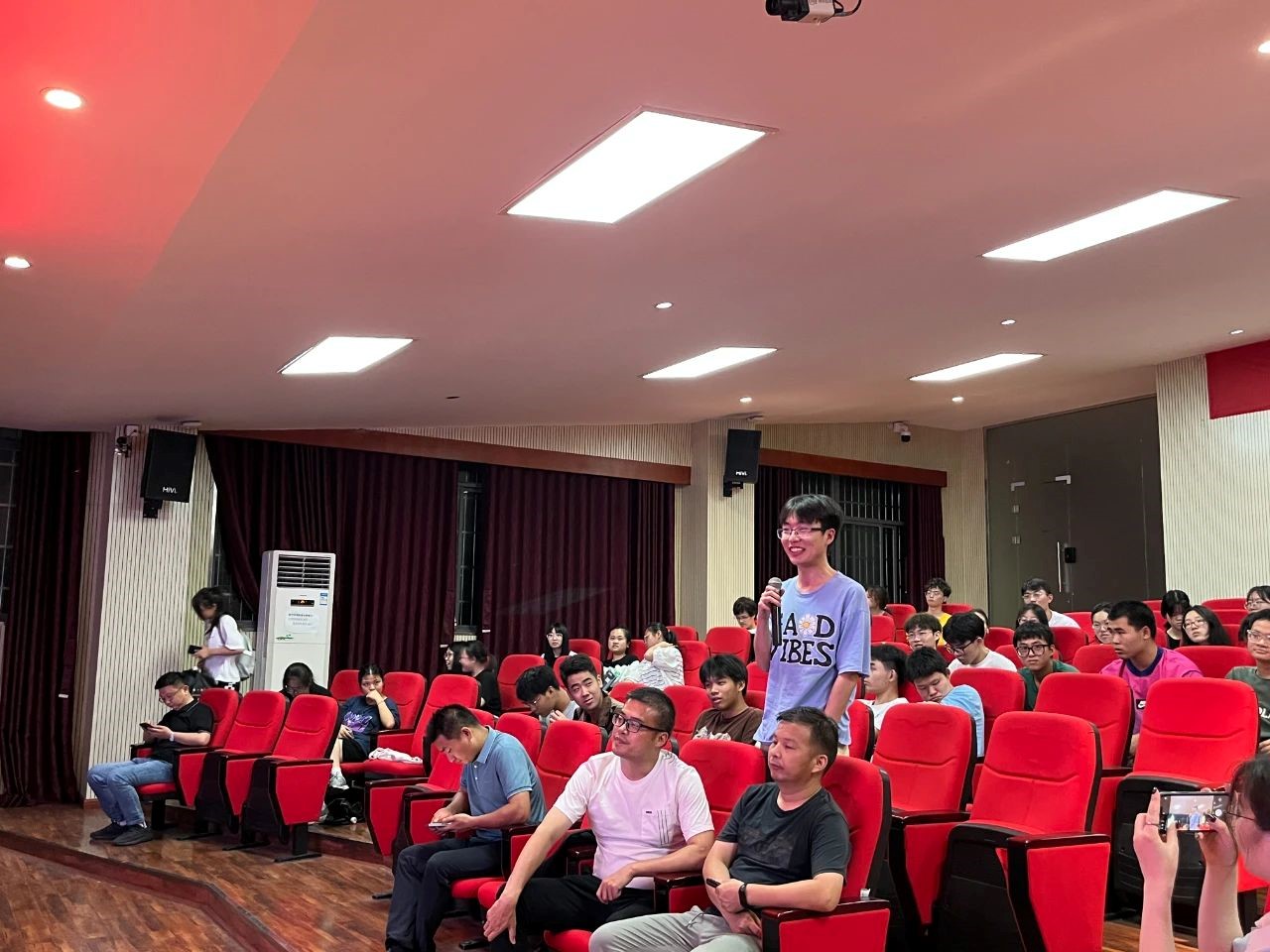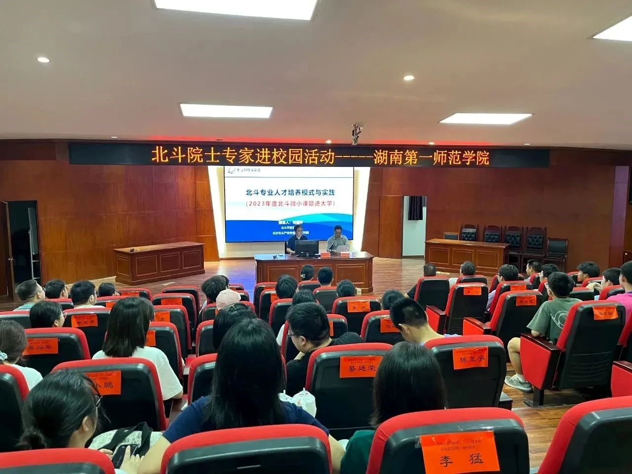 电子信息工程系主任谭周文、微电子系主任张沛及智能导航学科竞赛项目负责人胡恩博出席讲座。