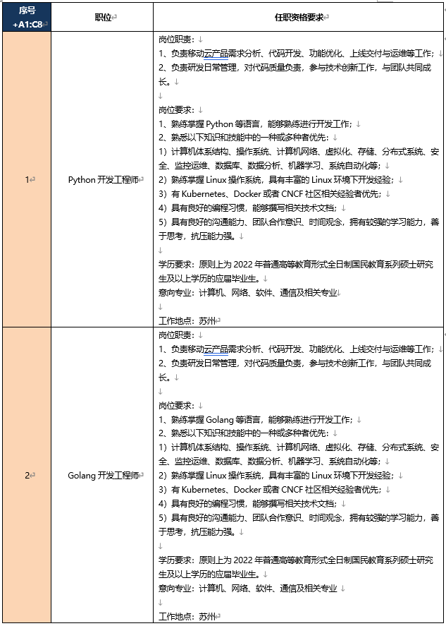 在中国移动云能力中心,你可以通过行业大牛的亲身传教,通过成熟且完善的培训课程,实现专业能力的快速提升,获得广阔的发展前景。在有着"人间天堂"美誉的苏州市,你可以在"有山有湖有美景 "的中移软件园实现自己的人生理想。伯乐识良马,明主觅贤才,现在,我们诚挚邀请你成为"云上之师",一起创造云计算的未来!