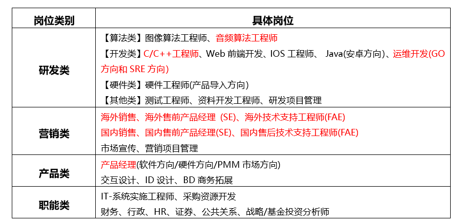 二、热招岗位 岗位类别