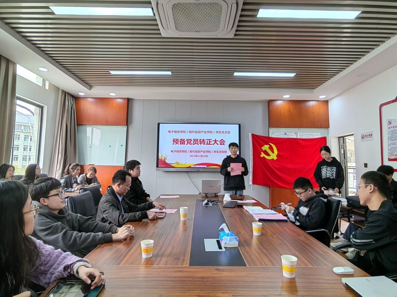学生党支部在302会议室召开学生党支部预备党员转正大会。学生党支部书记付焱、学生党支部副书记李荣敬以及全体学生党员参加会议,此次会议由段新利同志主持。