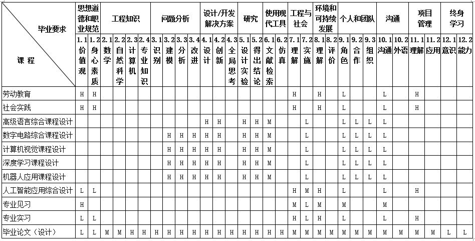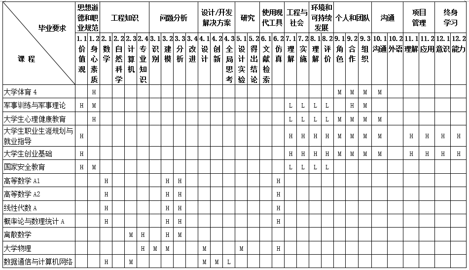 毕业要求对培养目标支撑的矩阵图