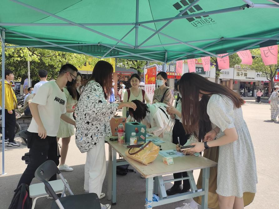我为同学做件事 | 打开“美好传送门” 作者: 发布时间:2022-04-17 点击数: 为了丰富同学们在疫情封校期间的生活,缓解孤独的心情,加强不同院系间学生的联系,坚定战胜疫情的信心,电信院学生会于4月17日在国基广场举办“美好传送门”活动,受到全校师生的欢迎。