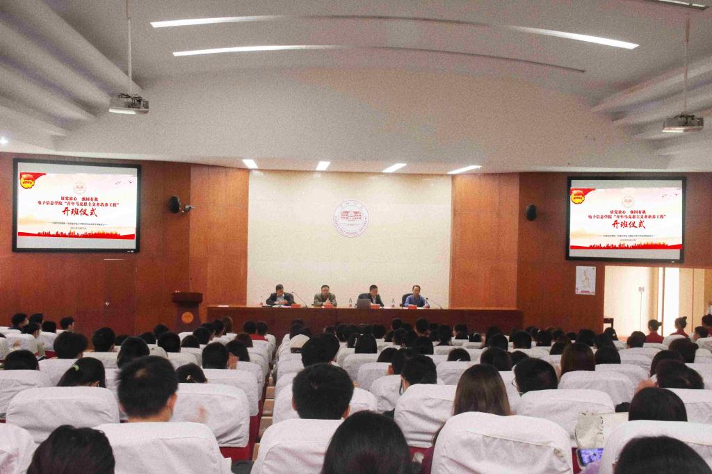 开班仪式由团委副书记李荣敬主持。他讲解了“青马工程”培训的意义和根本任务,介绍了本届“青马工程”培训班的具体安排,并对学员们提出了几点希望与要求。他指出,举办“青马工程”培训班既是学院贯彻落实上级团组织关于青年骨干培养工作的具体行动,也是深入推进新时期院分团委对广大青年加强思想引领的重要举措。希望参与“青马工程”培训班的学员积极抓住机会,强化学习政治理论,提高理论联系实际能力,真正用马克思主义理论武装头脑,做马克思主义的坚定信仰者、不断学习者和忠实践行者,力争成为一名优秀的青年马克思主义者。会上,学院领导分别致辞,要求学员们要在学生群体中积极发挥学生干部作用,切实履行学生干部的责任与义务,坚守初心使命,坚持从学生中来到学生中去,助力搭建好学校联系青年、沟通青年、服务青年的桥梁。在常态化疫情防控中积极参与防疫工作,在疫情防控中发挥先锋模范作用,以实际行动践行“请党放心,强国有我”的青春誓言。