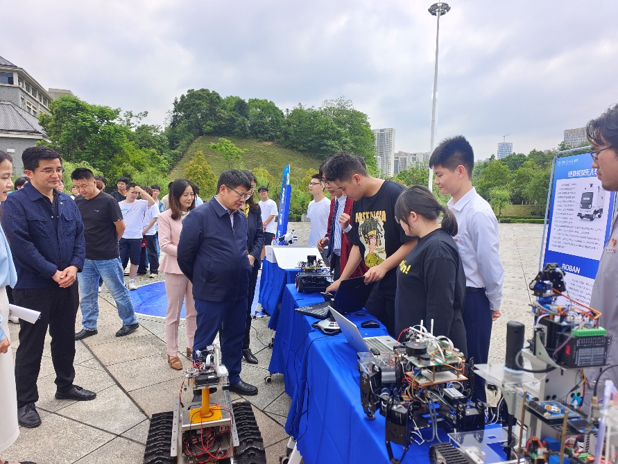 院党委书记吴涛、副书记伍雁鹏及学院辅导员老师们参加了启动会。在本次科技展览活动中,我们见证了青年学子们展现出的创新力和科技潜力。活动现场分为演示区、展示区、互动区三大区域,各项目团队通过详细介绍作品的工作原理、技术路线、创新性和应用前景,向观展师生展示了他们的科研成果和创意设计。