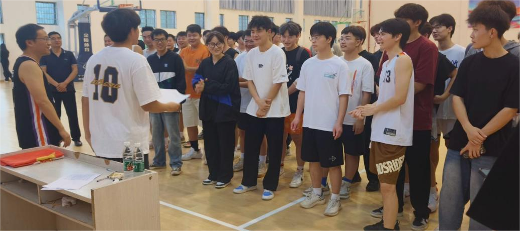 于2024年5月10日下午东方红校区室内田径场举行班级篮球赛开幕式。出席本次活动的领导有院党委书记吴涛、电信院教职工以及学生。