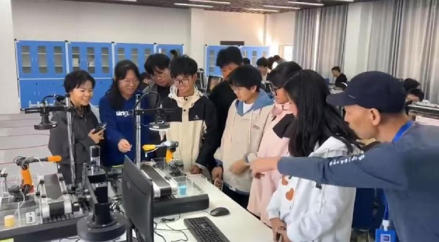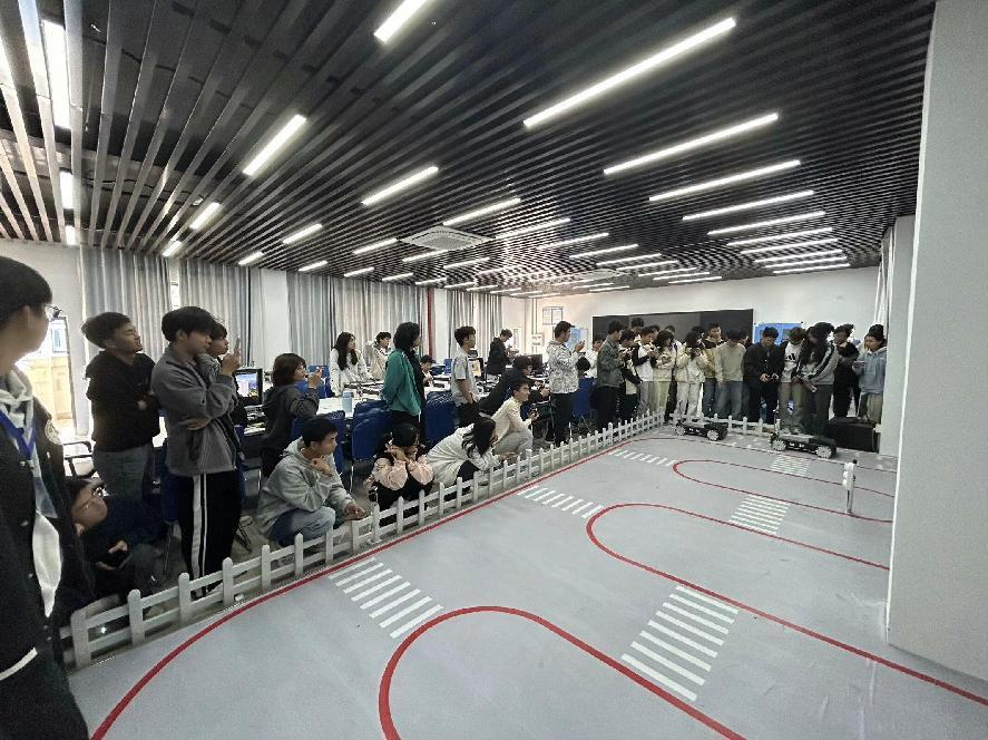 接着,李世友教授还带领同学们体验了六轴机械臂和智能驾驶机器人,这不仅能让同学们更好地感受智能技术带给我们的操作乐趣,也能更好地体会智能技术带给我们的技术变迁,同学们通过实操不仅能提高自己的动手能力,更利于兴趣的培养。