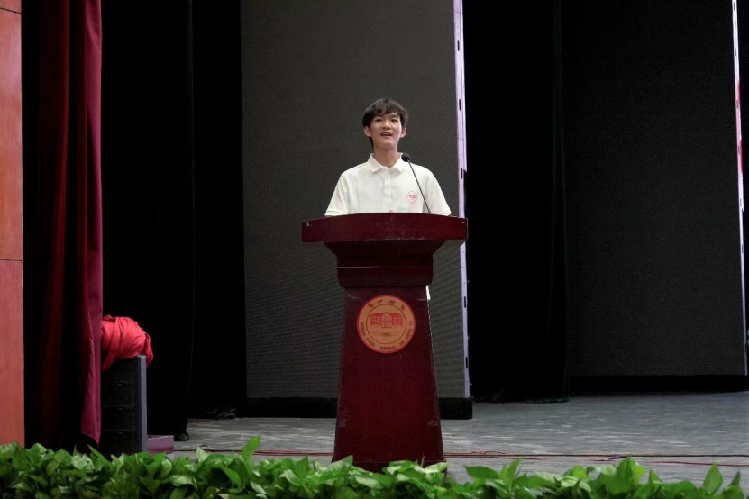 紧接着,老生代表燕汉上台发言。他以真挚的情感和丰富的经验,为新生们描绘了一幅丰富多彩的大学生活画卷。他鼓励新生们快速融入集体,保持求知若渴的心态,同时注重人际交往,学会在合作中成长,在沟通中进步。