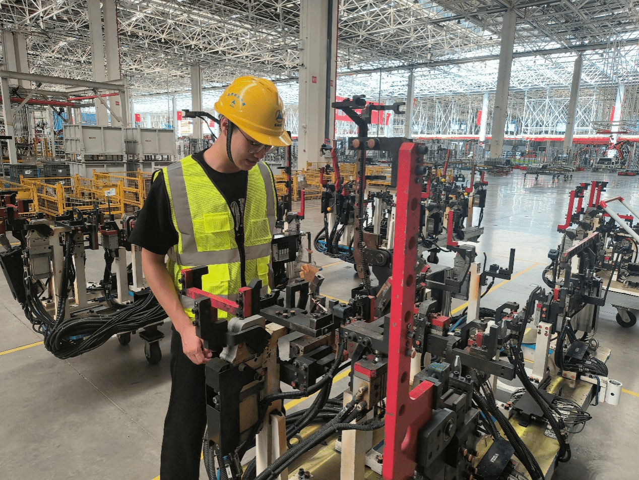 商用车事业部的实习则为学子们打开了重卡生产全流程的观察窗口。陈滔同学在安全与合规管理岗位上,深刻体会到“安全是制造的生命线”——从4M1E(人、机、料、法、环)点检标准,到参与消防巡检、起重作业风险排查,每一项工作都需严谨细致。“我们要核对每一份操作资质,追溯每一条生产记录,确保风险可控。”陈滔负责的叉车作业安全培训,将课堂上学的风险评估知识转化为工友们易懂的操作规范,这种“理论落地”的实操让她印象深刻。